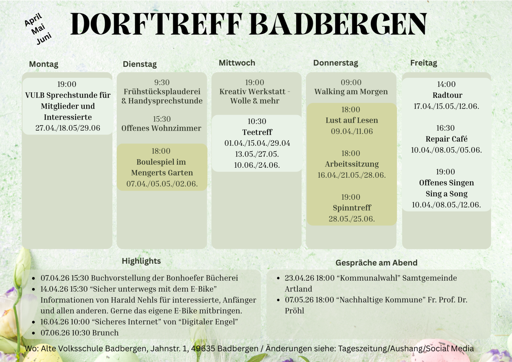 Dorftreff Programm April Mai Juni